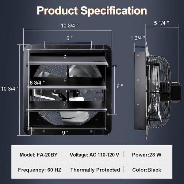 7 in. Shutter Exhaust Fan with 1.8m Cord 60hz 28-Watt Pure Copper Motor Electric Powered Gable Mount