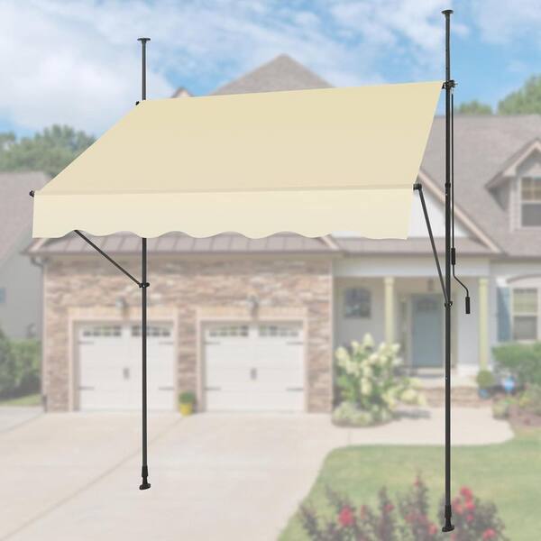 78-Inch Manual Retractable Aluminum Polyester Awning for Patio Doors, UV Protection Sunshade Shelter, Beige