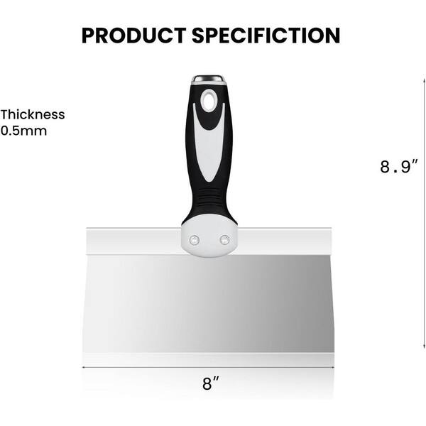 8 in. Stainless Steel Drywall Taping Knife with Soft Grip Handle for Skimming and Plastering