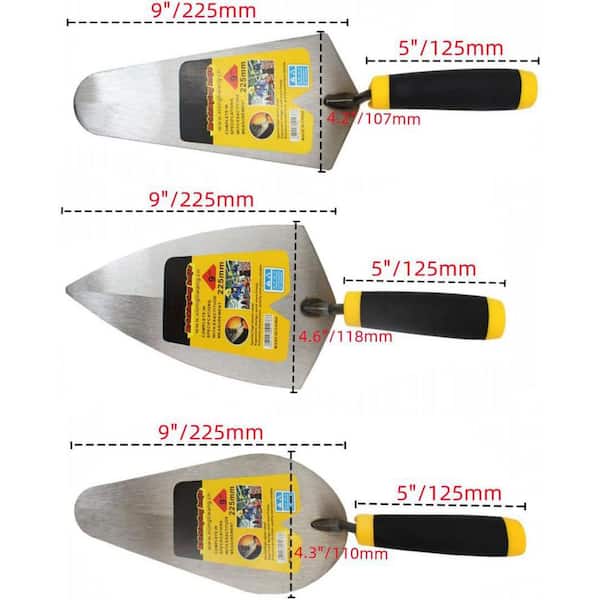 9 in. Masonry Trowel Set with Comfortable Handle, Includes Margin, Pointing, Tuck Pointing Trowels for Professional Use