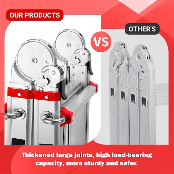 A Frame 4 Step Telescoping Ladder with Stabilizer Bar and Wheels 14 ft. Aviation-Grade Aluminum Alloy 330lbs Max Capacit