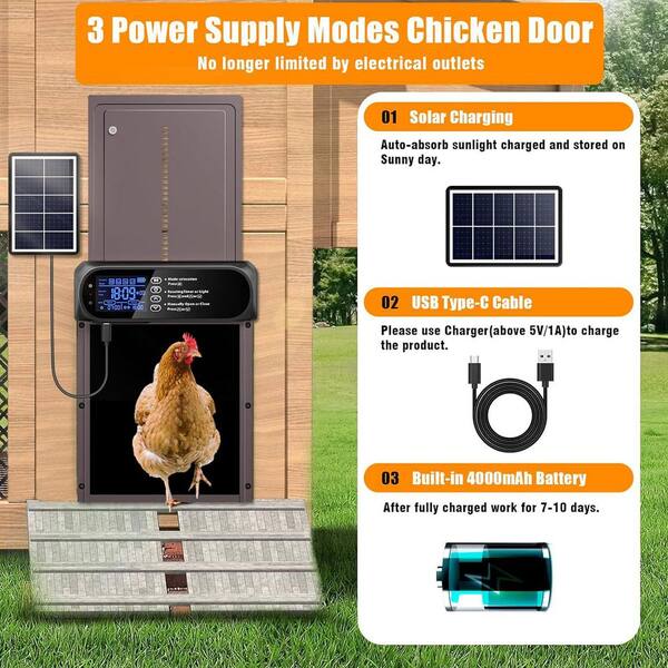 Aluminum Automatic Chicken Coop Door with Timer Light Sensor LCD Screen Electric Opener Anti-Pinch Protection Equipment