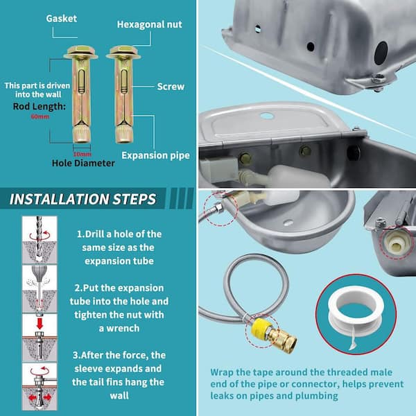 Automatic Animal Drinking Water Bowl Stainless Steel Waterer for Dog Horse Goat Pig Cow w/ Pipe Hose and 2-Float Feed