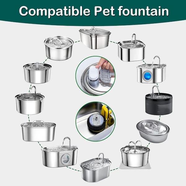 Cat Water Fountain Replacement Filters 16 Pack for 67oz/2L Stainless Steel Adjustable Water Flow Pet Fountain 8+8 Pack