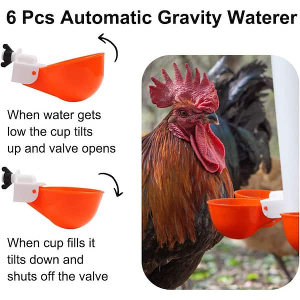 Chicken Feeder No Waste Automatic Poultry Feeder Ports Kit with Waterer Set Rain-Proof Easy Install 6 Feeders 6 Waterers