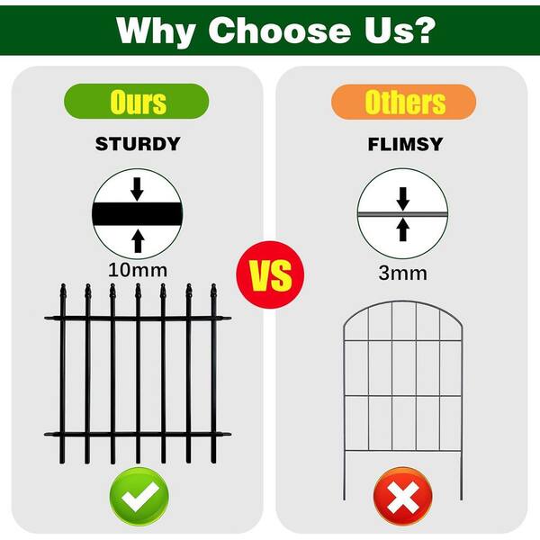 Decorative Metal Garden Fence 24 x 24 Panels, 10 ft. Total, Folding Landscape Fencing for Yard and Pet Barrier