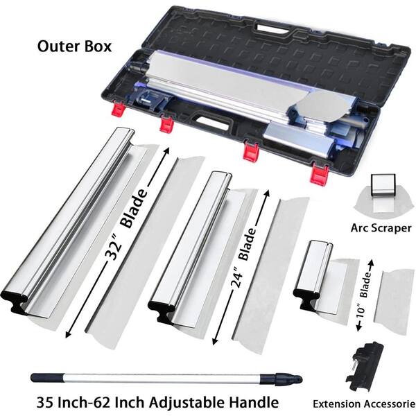 Drywall Skimming Blade Set with Adjustable Handle Arc Scraper Extruded Aluminum Grips Stainless Steel Blades 3 Pack