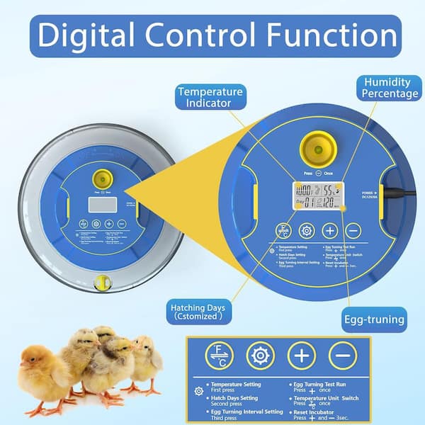 Egg Incubator with Auto Turning Humidity Control 360° View Egg Candler for Chicken Duck Goose Quail Equipment