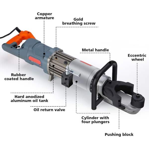 Electric Rebar Bender 1100-Watts Hydraulic Machine for 5/8 in. Rebar Bends in 2-2.5 Seconds Grey Orange