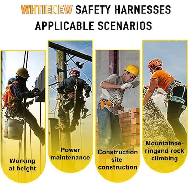 Fall Protection Kit with Shock Absorbing Lanyard, Full Body Safety Harness for Roofing Construction, Yellow