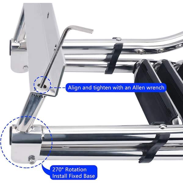 Heavy Duty 316 Stainless Steel 4 Step Telescoping Folding Pontoon BoatLadder with Wide Strong Handrails Reach 15.5 in. H
