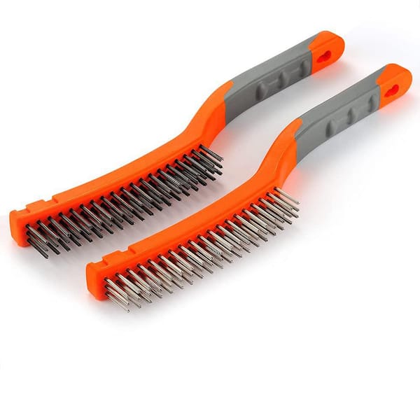 Large Heavy Duty Wire Brushes Set for Rust Concrete Paint Removal, Stainless and Carbon Steel Bristles, 14-Handle, 2-Pcs