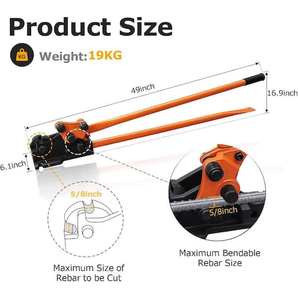Manual Rebar Bender Cutter Steel Construction Tool for Cutting and Bending Up to 5 Rebar 0-180°