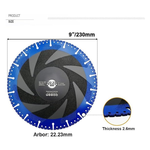 Metal Cutting Diamond Blade 9 in. All Purpose Cut Off Wheel for Rebar Stainless Steel and Sheet Metal