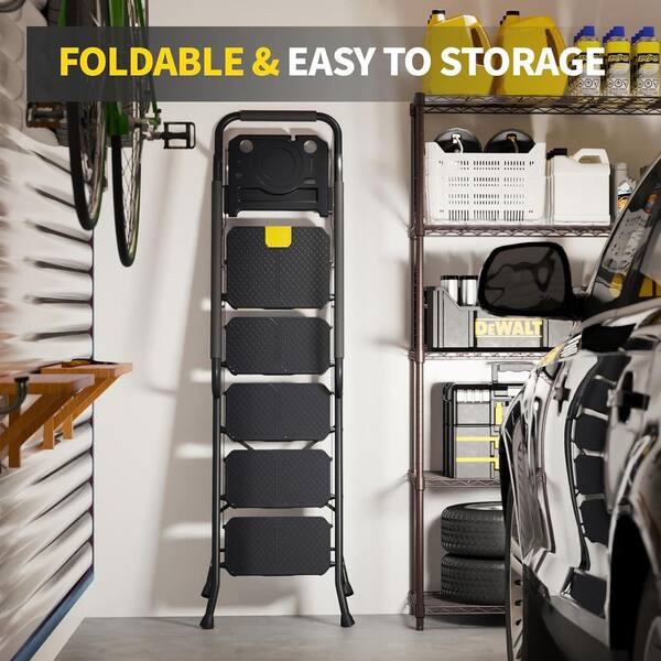 Reach 60 in. H, 5 Step Ladder with Tool Platform Folding Step Stool Handrails Sturdy SteeL Wide Pedal, 800 lbs. Aluminum