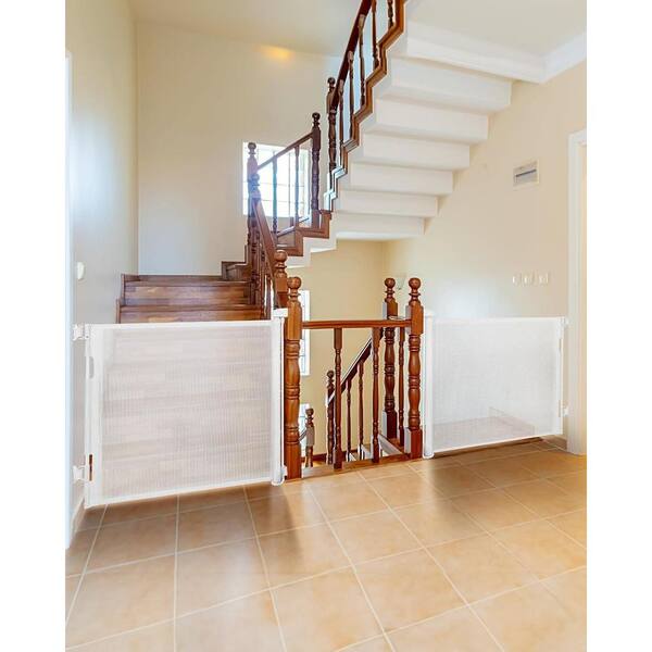 Retractable Baby or Dog Gate 2 Pack 33 Tall Extends 55 Wide Mesh Child Safety for Doorways Stair White Fence Panel Steel