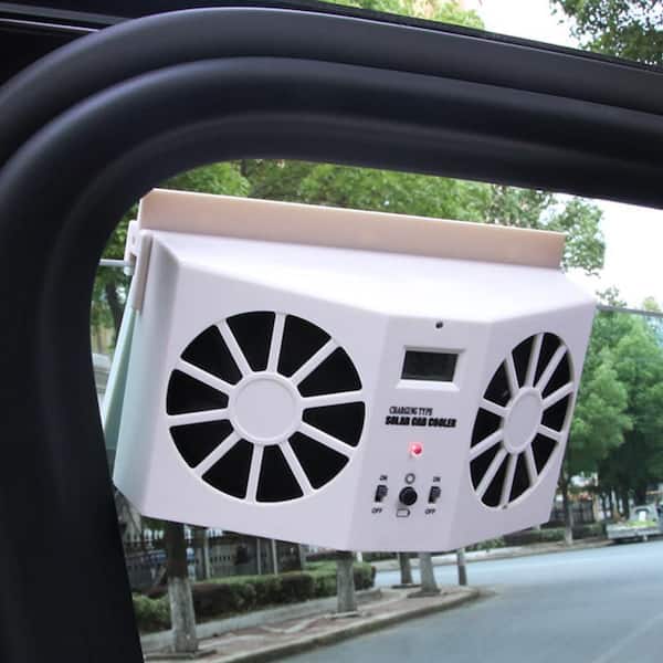 Solar-Powered Car Exhaust Fan with Temperature Display, White