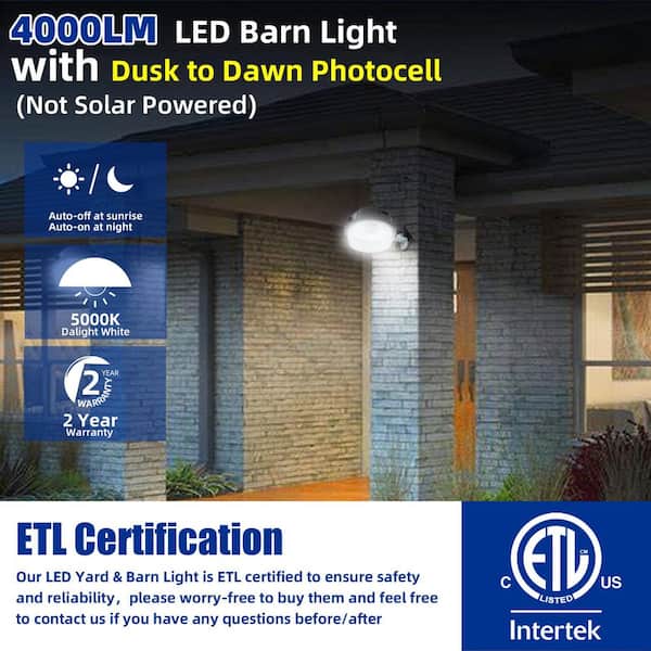 • Dusk-to-dawn photocell sensor automatically turns on at night