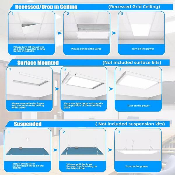 2 ft. x 2 ft. White Integrated LED Flat Panel Troffer Light Fixture at 5800 Lumens, 5000K Bright White (4-Pieces)