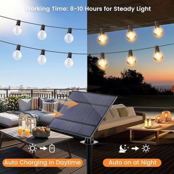25 Light 50 ft. Indoor/Outdoor Solar Powered G40 Party Integrated LED Globe String-Light (with 25 Sockets +1 Spare Bulb)