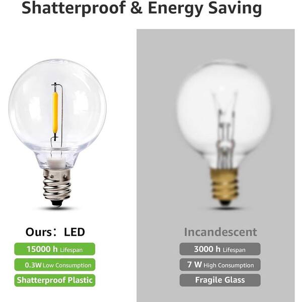 (25-Light 50 ft. ) Outdoor G40 Globe Bulb Shatterproof Solar Powered Integrated LED Fairy String-Light, E12 Base, 2700K