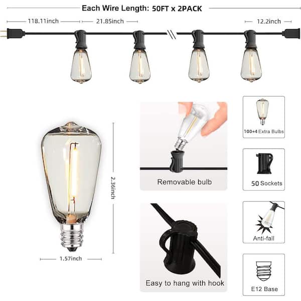 25-Light 50 ft. Outdoor Plug-In Integrated LED Fairy String-Light, Shatterproof ST38 LED Bulbs (2-Pack)
