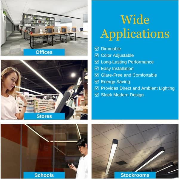 4 ft. 50-Watt 3CCT Selectable 6000-lumen Black Integrated LED Up and Down Suspended Shop Light Fixture Dimmable (4-Pack)