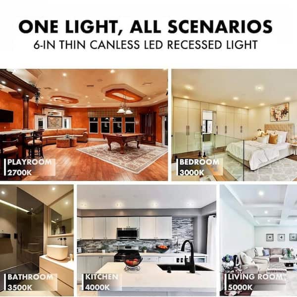 5/6 in. Slim LED Recessed Ceiling Light Adjustable CCT Canless Dimmable 12-Watt Integrated LED with Night Light 12-Pack