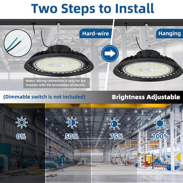 600 Watt Equivalent Integrated LED 24000 Lumens, Dimmable Black High Bay Light, 5000K Bright White