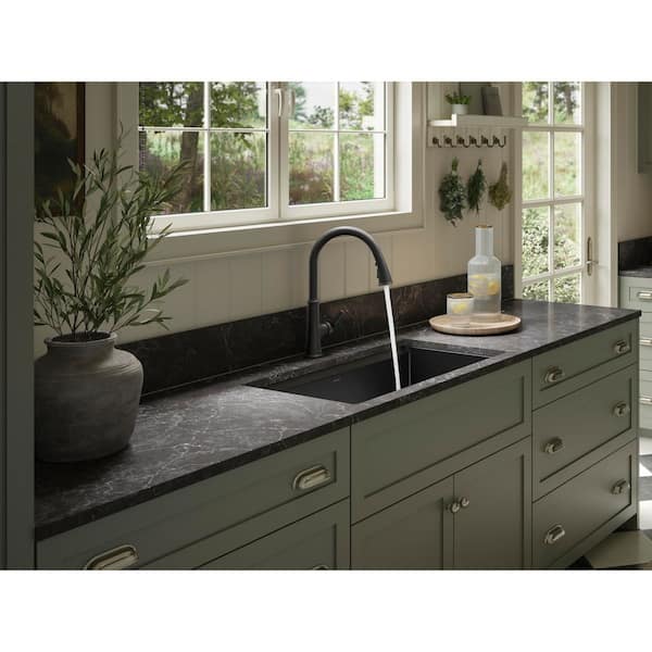 Adva Single Handle 3-Function Pull Down Sprayer Kitchen Faucet In Matte Black