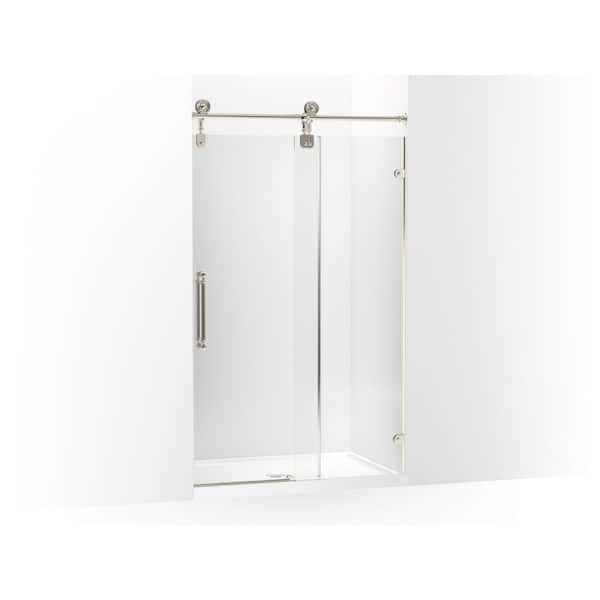 Artifacts 46-47 in. W x 81 in. H Sliding Shower Door in Vibrant Polished Nickel with 3/8 in. Thick Crystal Clear Glass