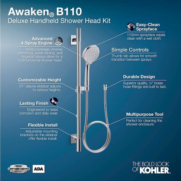 Awaken 4-Spray Multifunction Deluxe Wall Bar Shower Kit with Hand Shower in Polished Chrome