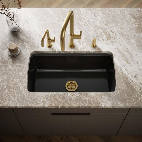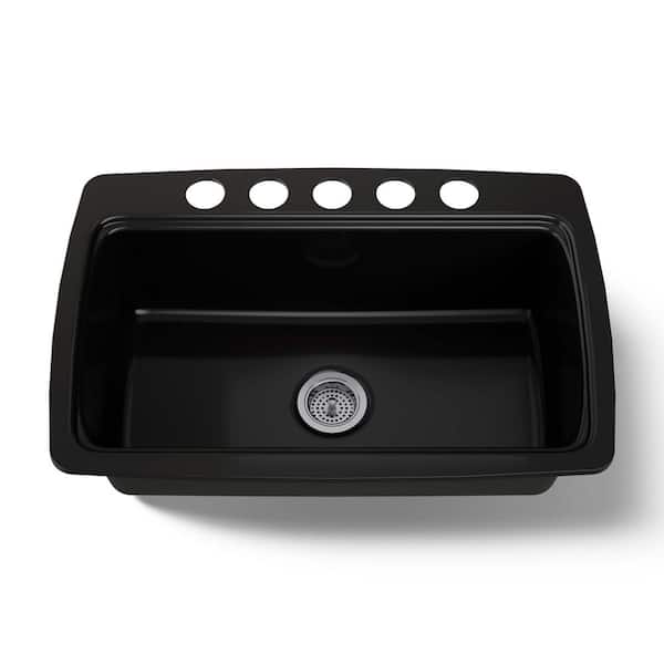 Cape Dory Undermount Cast-Iron 33 in. 5-Hole Single Bowl Kitchen Sink in Black Black