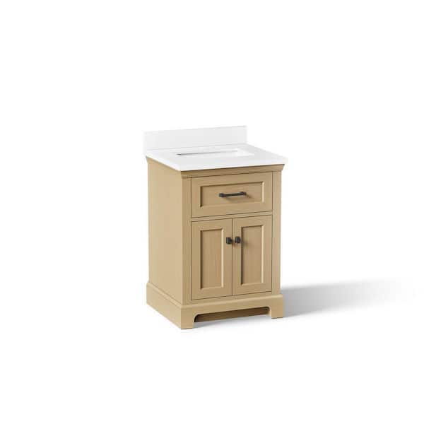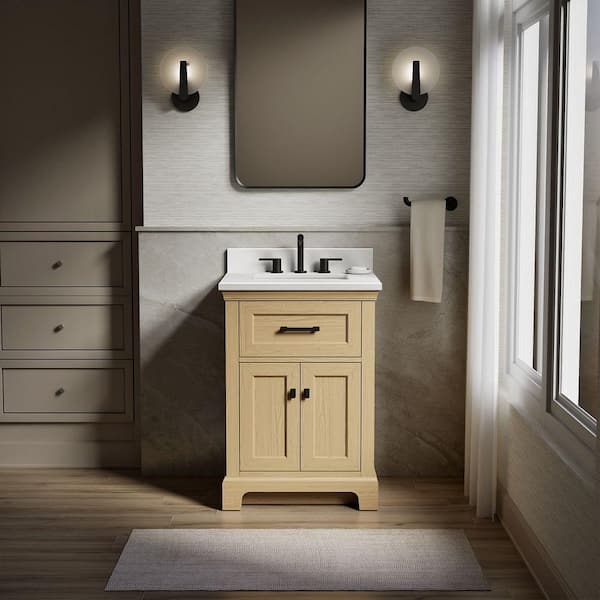 Charlemont 25in. Single Sink Freestanding Light Oak Bath Vanity with White Quartz Top Assembled