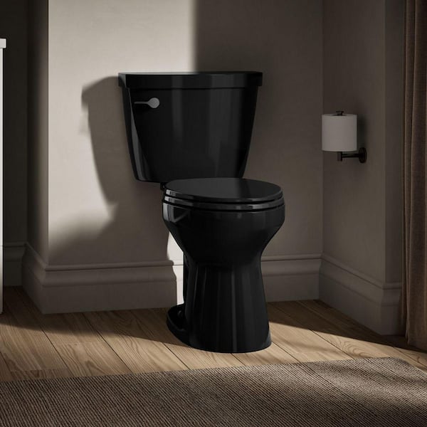 Cimarron 12 in. Rough In 2-Piece 1.6 GFP Single Flush Elongated Chair Height Toilet in Black Black, Seat Not Included