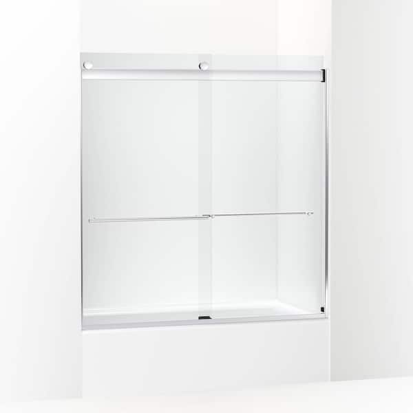 Claro 57 - 60 in. W x 62 in. H Frameless Sliding Tub Door in Polished Silver with 1/4 in. Thick Crystal Clear Glass