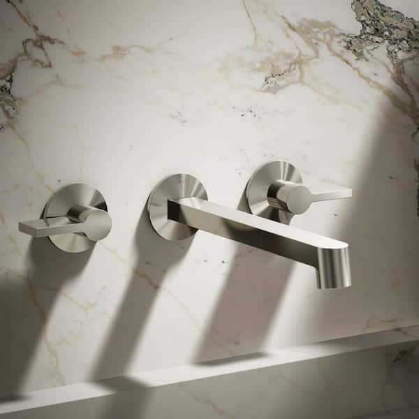 Components Wall-Mount Bathroom Sink Faucet Spout with Row Design 1.2 GPM in Vibrant Polished Nickel
