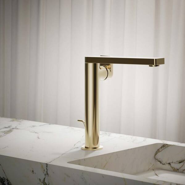Composed Tall Single-Handle 1.2 GPM bathroom Sink Faucet with Lever Handle in Vibrant French Gold
