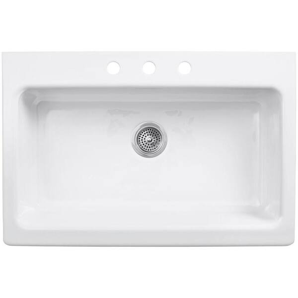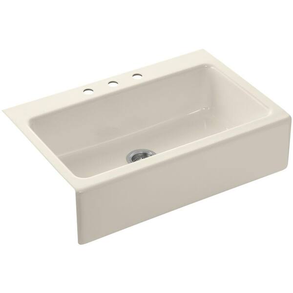 Dickinson Farmhouse Apron-Front Cast Iron 33 in. 3-Hole Single Basin Kitchen Sink in Almond