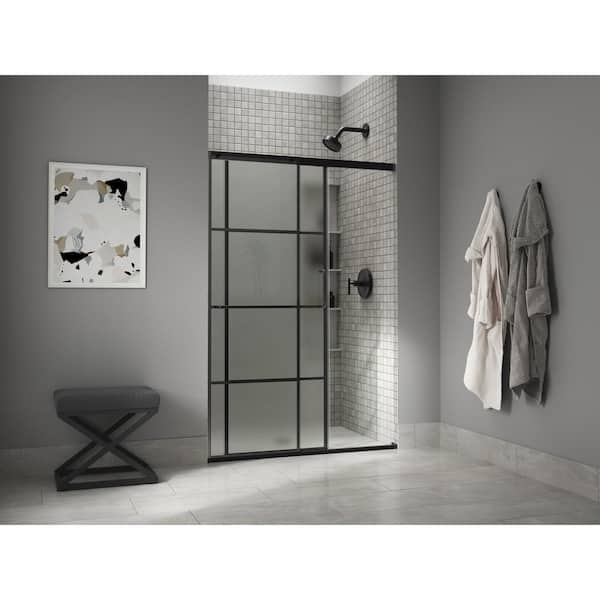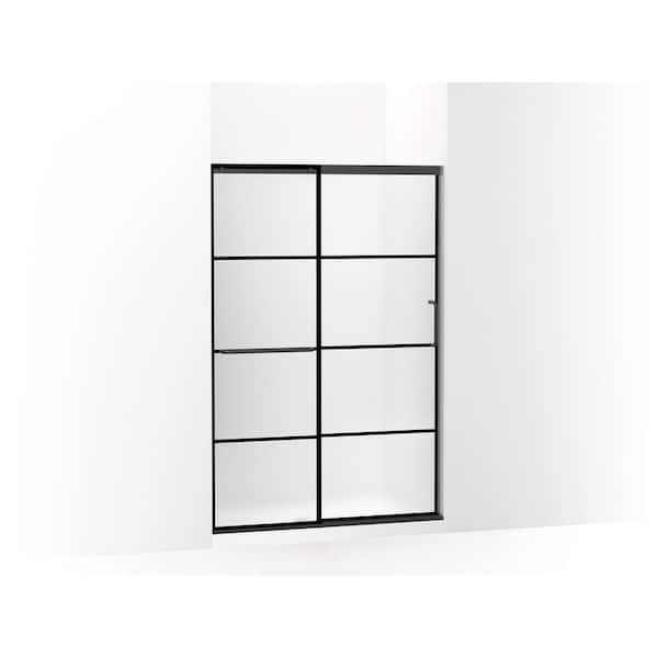 Elate 44-48 in. W x 71 in. H Sliding Frameless Shower Door in Matte Black with Frosted Glass