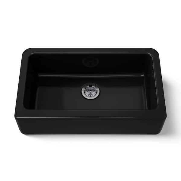 Elmbrook Cast Iron 33 in. Single Bowl Farmhouse Apron Front Kitchen Sink in Biscuit