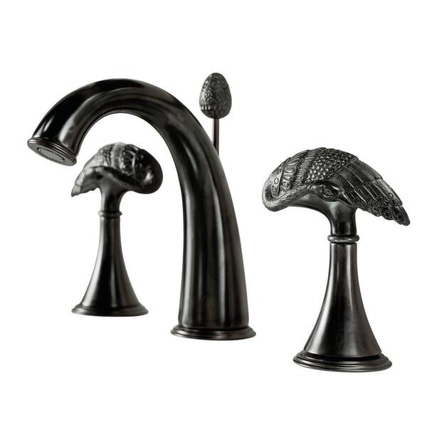 Finial Avian 8 in. Widespread 2-Handle Low-Arc Bathroom Faucet in Black Iron