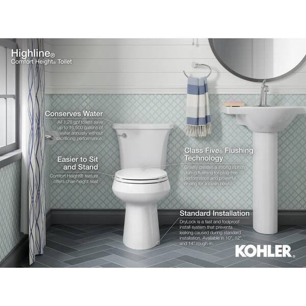 Highline 12 in. Rough In 2-Piece 1.28 GPF Single Flush Round Toilet in White Seat Not Included