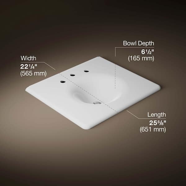 Iron/Impressions 25 in. x 22 in. vanity top with integrated round sink in White