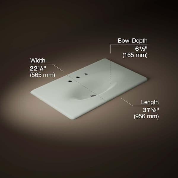 Iron/Impressions 37-5/8 in. W x 6.5 in. D x 22.25 in. L Cast Polymers Vanity Top with Basin in Sea Salt