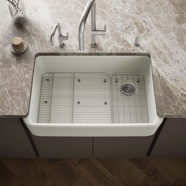 Ironridge Cast Iron 34 in. Single Bowl Farmhouse Apron Kitchen Sink with Sink Rack in Dune
