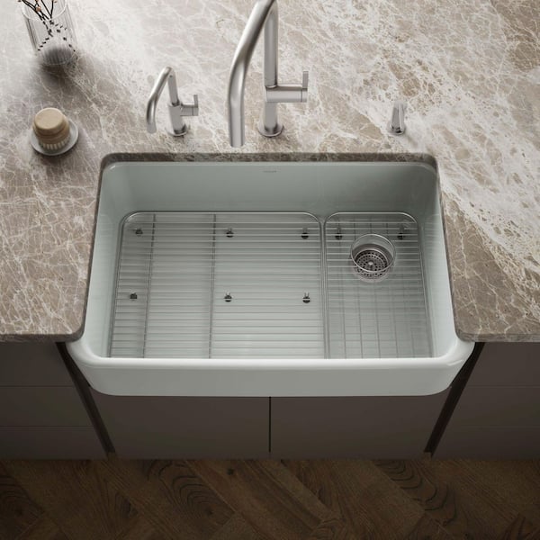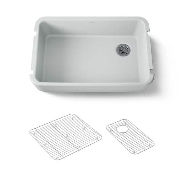 Ironridge Cast Iron 34 in. Single Bowl Farmhouse Apron Kitchen Sink with Sink Rack in Ice Grey