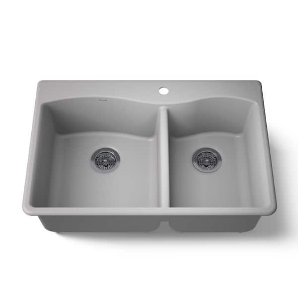 Kennon Neoroc Matte Grey Granite Composite 33 in. 1-Hole Double Bowl Drop-In Kitchen Sink