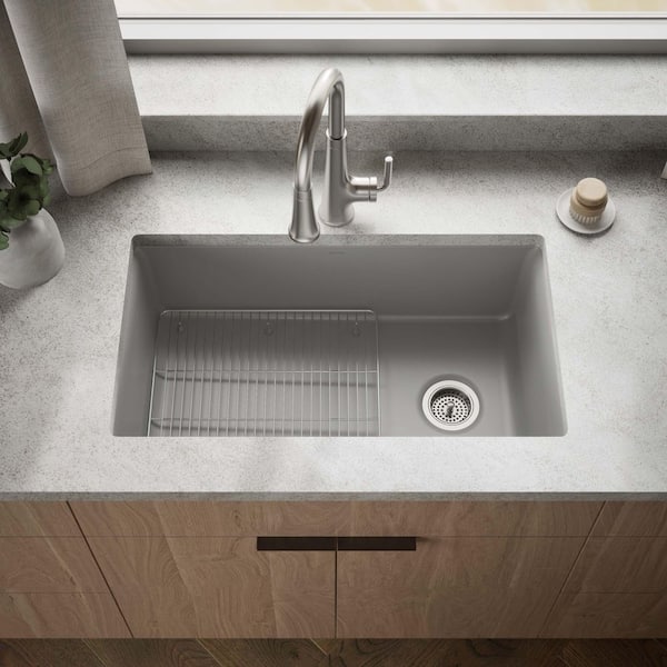 Kennon Neoroc Matte Grey Granite Composite 33 in. 1-Hole Single Bowl Drop-In Kitchen Sink