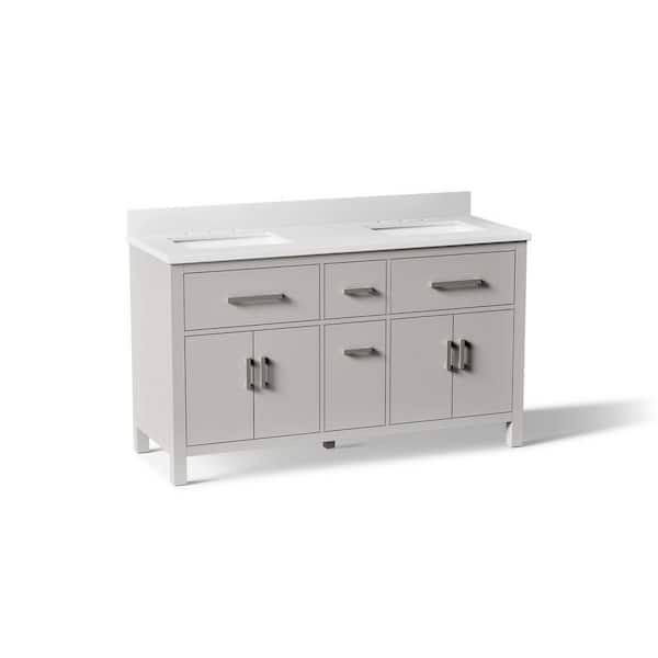 Kresla 61in. Double Sink Freestanding Atmos Grey Bath Vanity with White Quartz Top Assembled